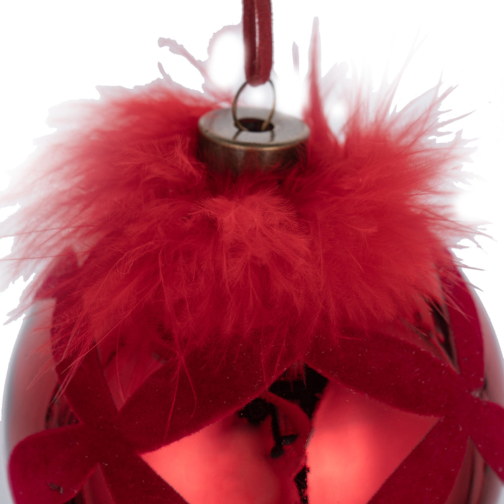 Add a touch of elegance to your holiday decor with our Red Glass Christmas Ball Ornament adorned with feathers. This stunning ornament features a rich red hue with a glossy finish, beautifully complemented by delicate, soft feathers that create a luxurious look. Add a touch of elegance to your holiday decor with our Red Glass Christmas Ball Ornament adorned with feathers. This stunning ornament features a rich red hue with a glossy finish, beautifully complemented by delicate, soft feathers that create a luxurious look.