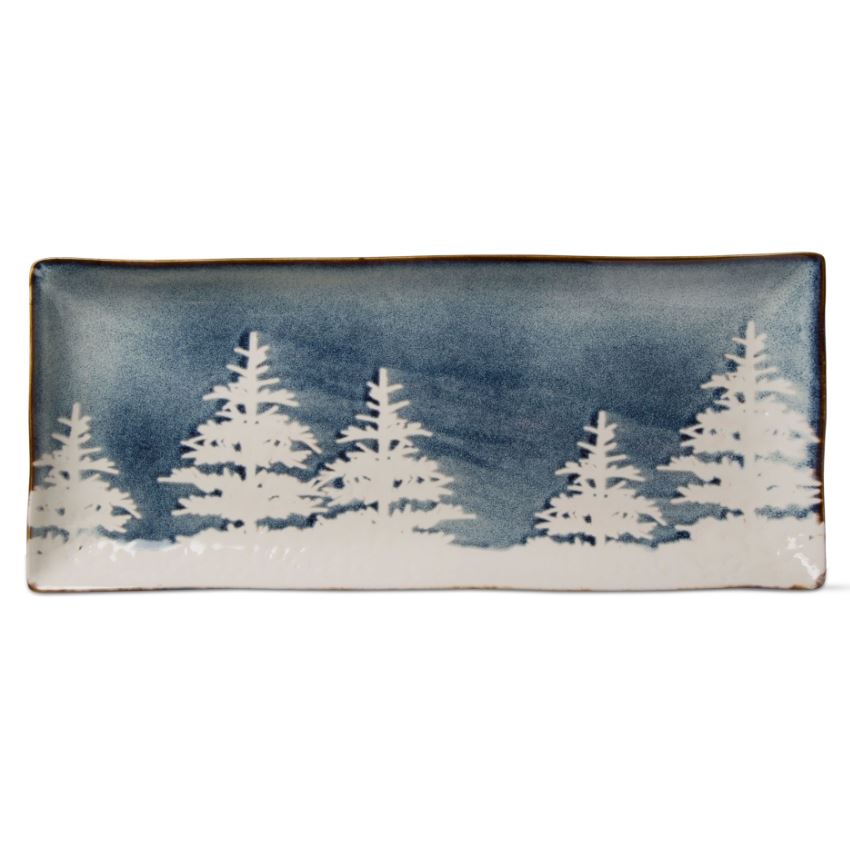 It's all in the details! Serve up appetizers and hors d'oeuvres alongside beautiful forest art for the winter season. Made from stoneware, this platter features reactive glaze, hand paint, and gloss details. Beautifully versatile and functional.