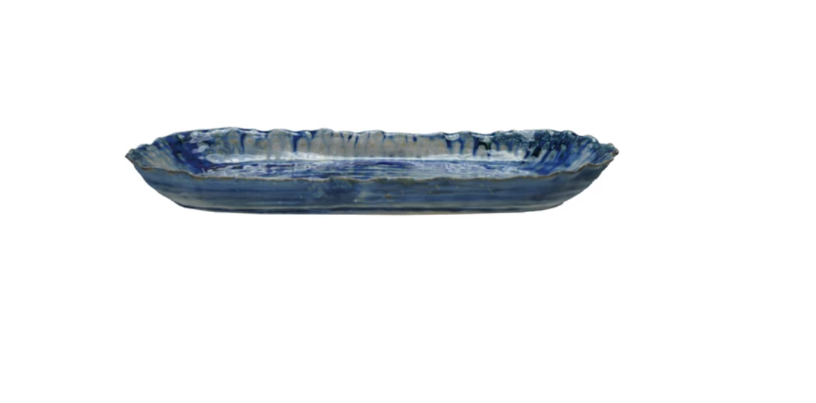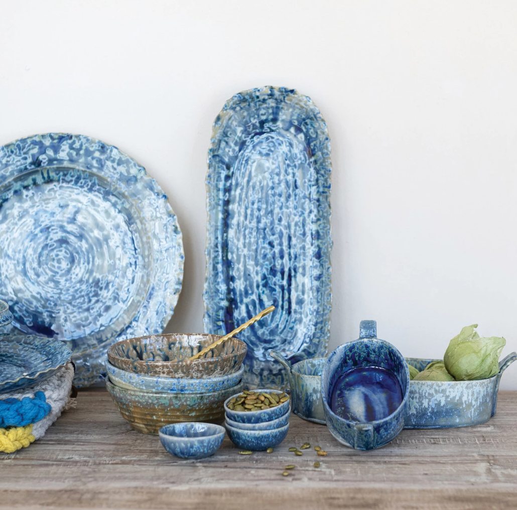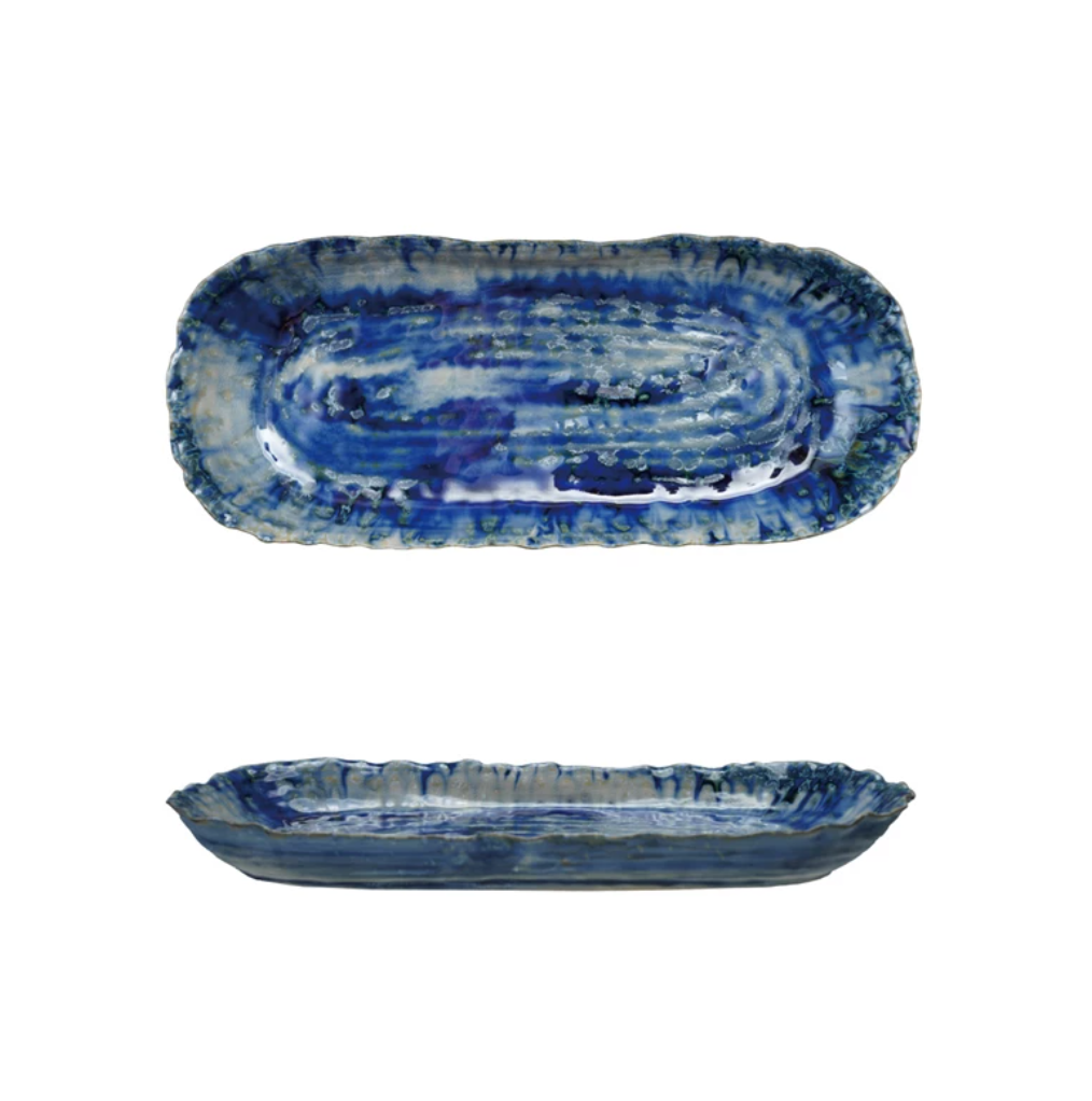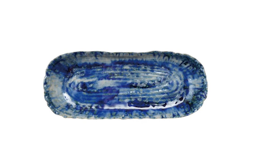 Stoneware Platter, Reactive Crackle Glaze, Blue