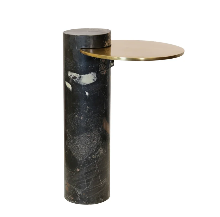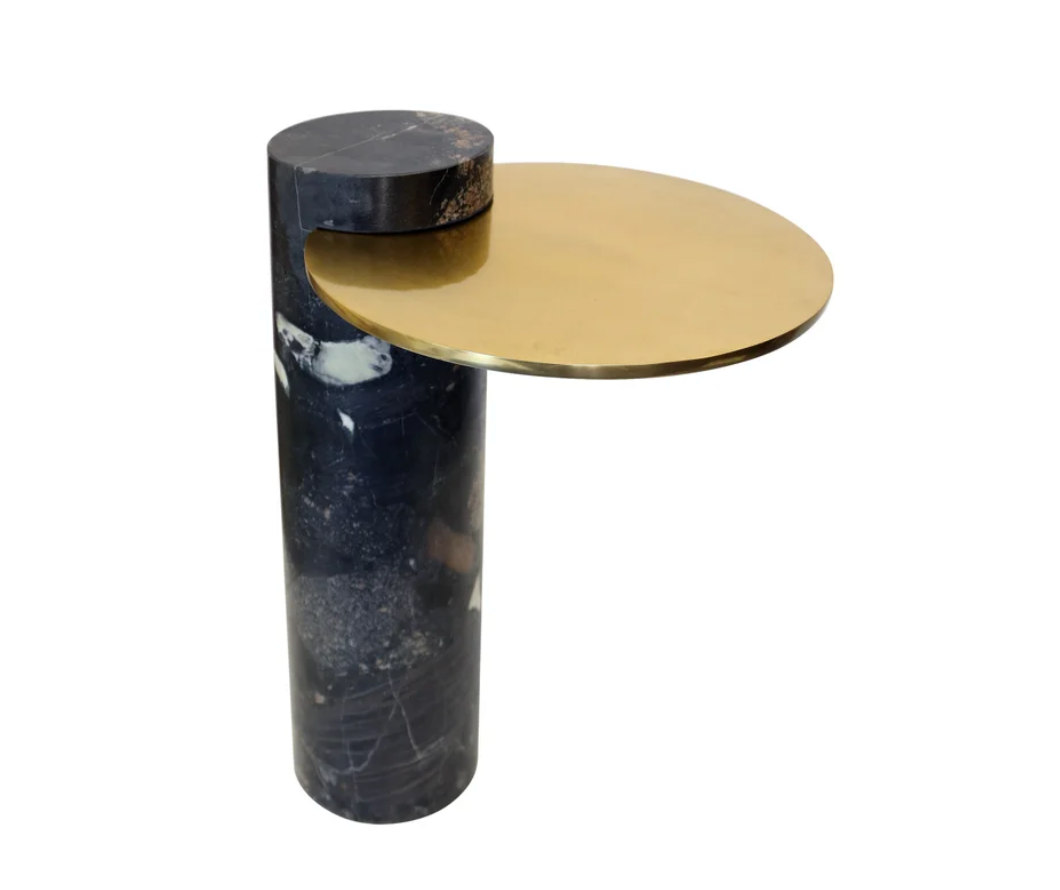 Sculptural and refined, this Black Marble Table features a solid marble post paired with a sleek brass metal tabletop. Handcrafted in India, its striking contrast of natural stone and warm metal creates a timeless accent for living rooms, bedrooms, or curated corners. Compact yet bold, this piece adds effortless luxury and modern elegance to any space.