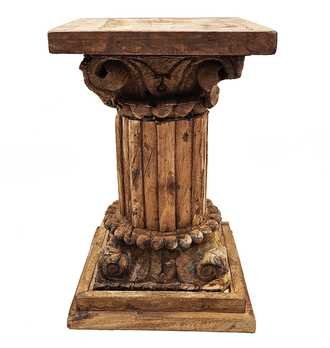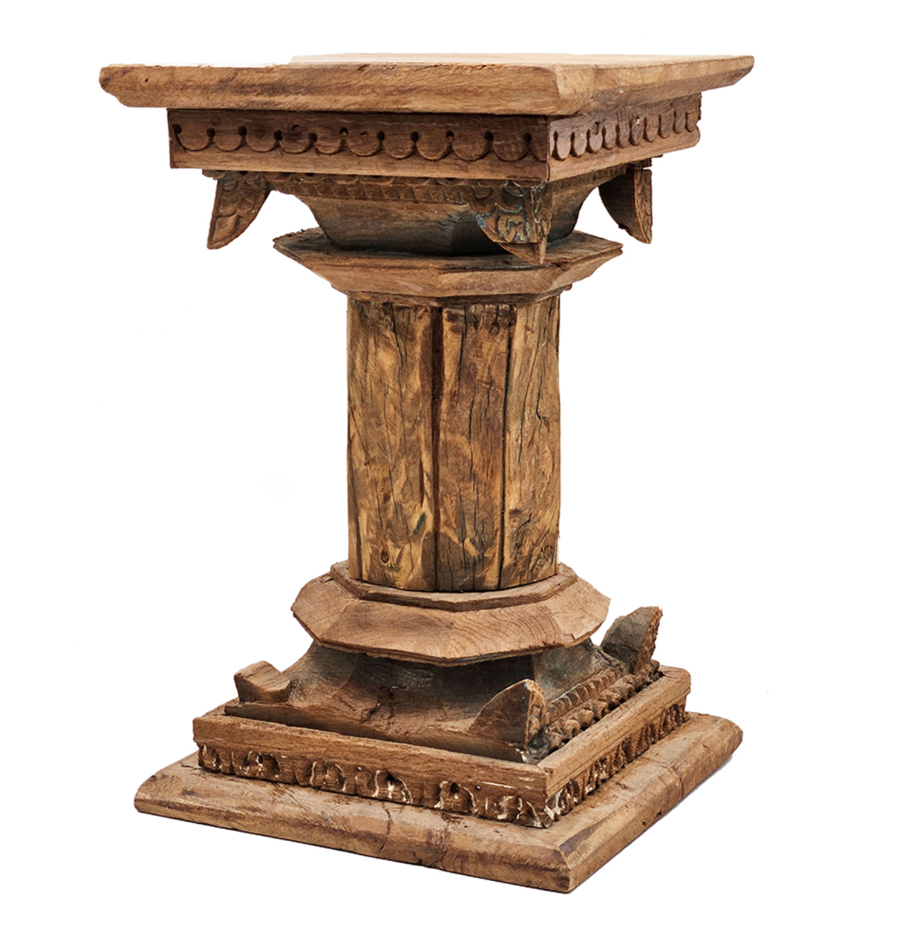 Rustic and architectural, this Carved Pillar Base Stool is inspired by classical column design and handcrafted with rich wood texture and detailed carvings. Its sculptural form makes it a versatile accent—use it as a stool, side table, or decorative pedestal to display art or objects. Full of character and timeless appeal, this piece adds depth and history to both traditional and eclectic interiors.