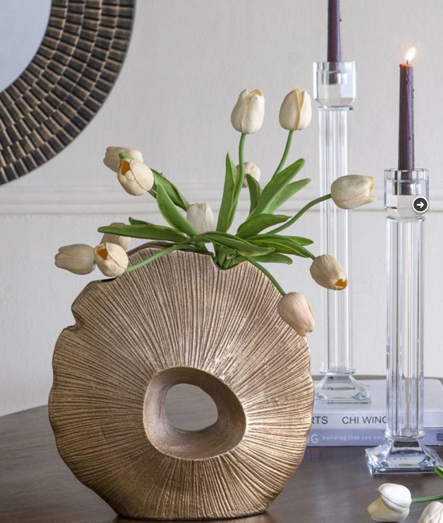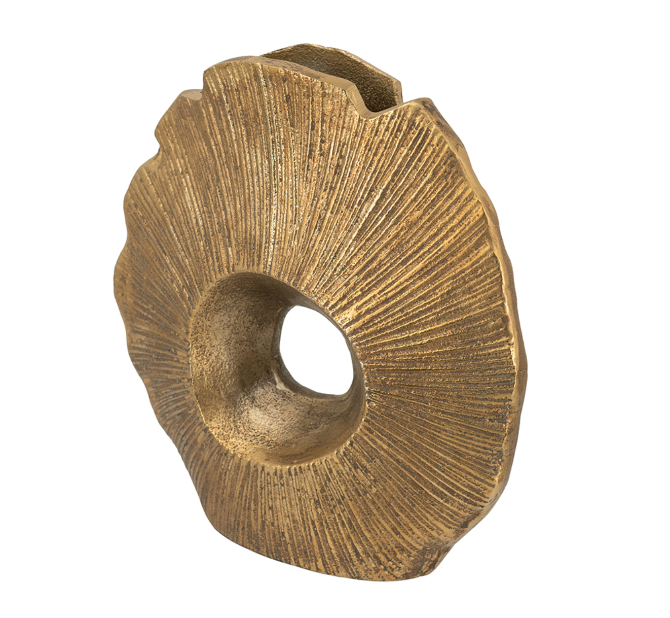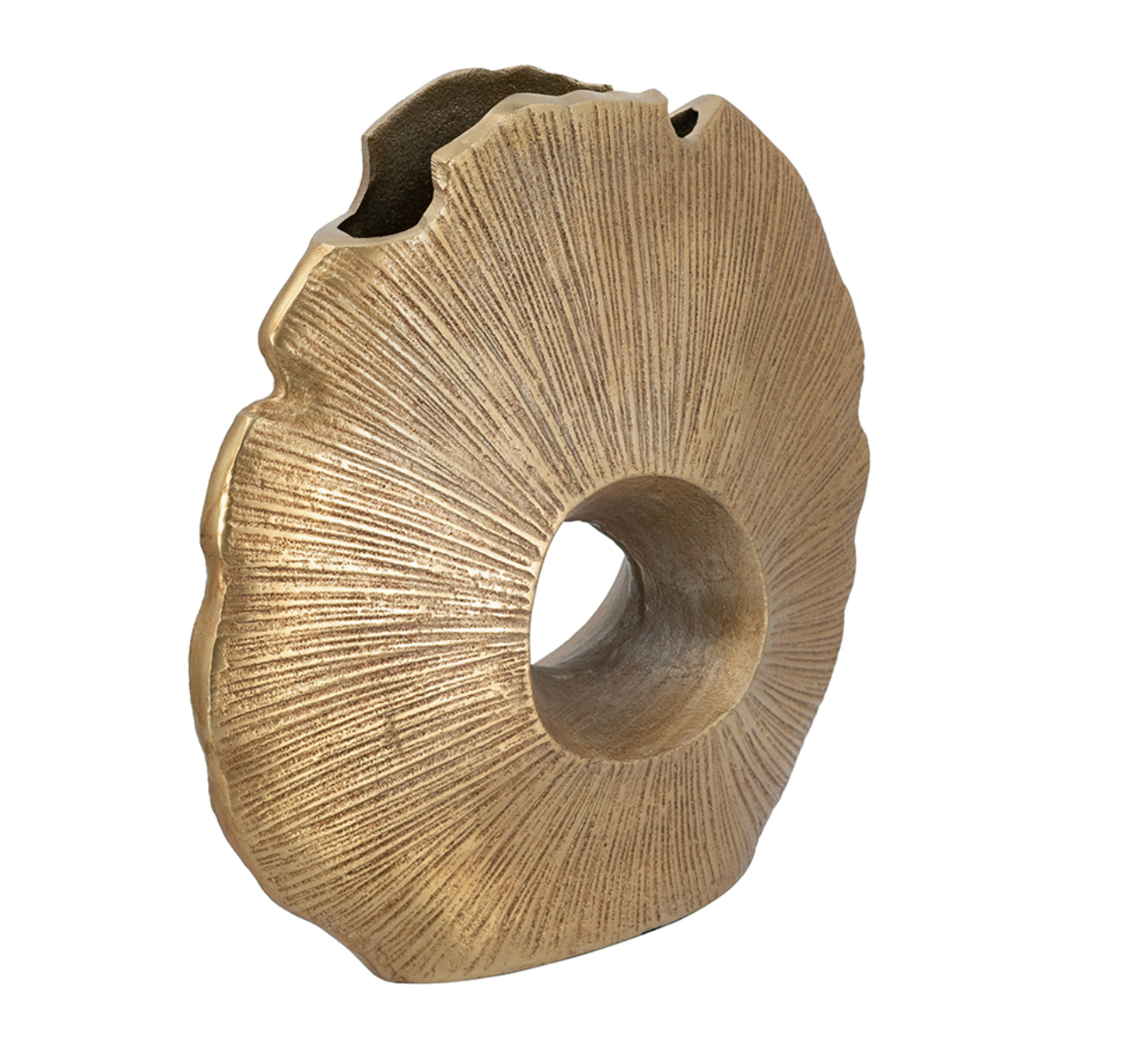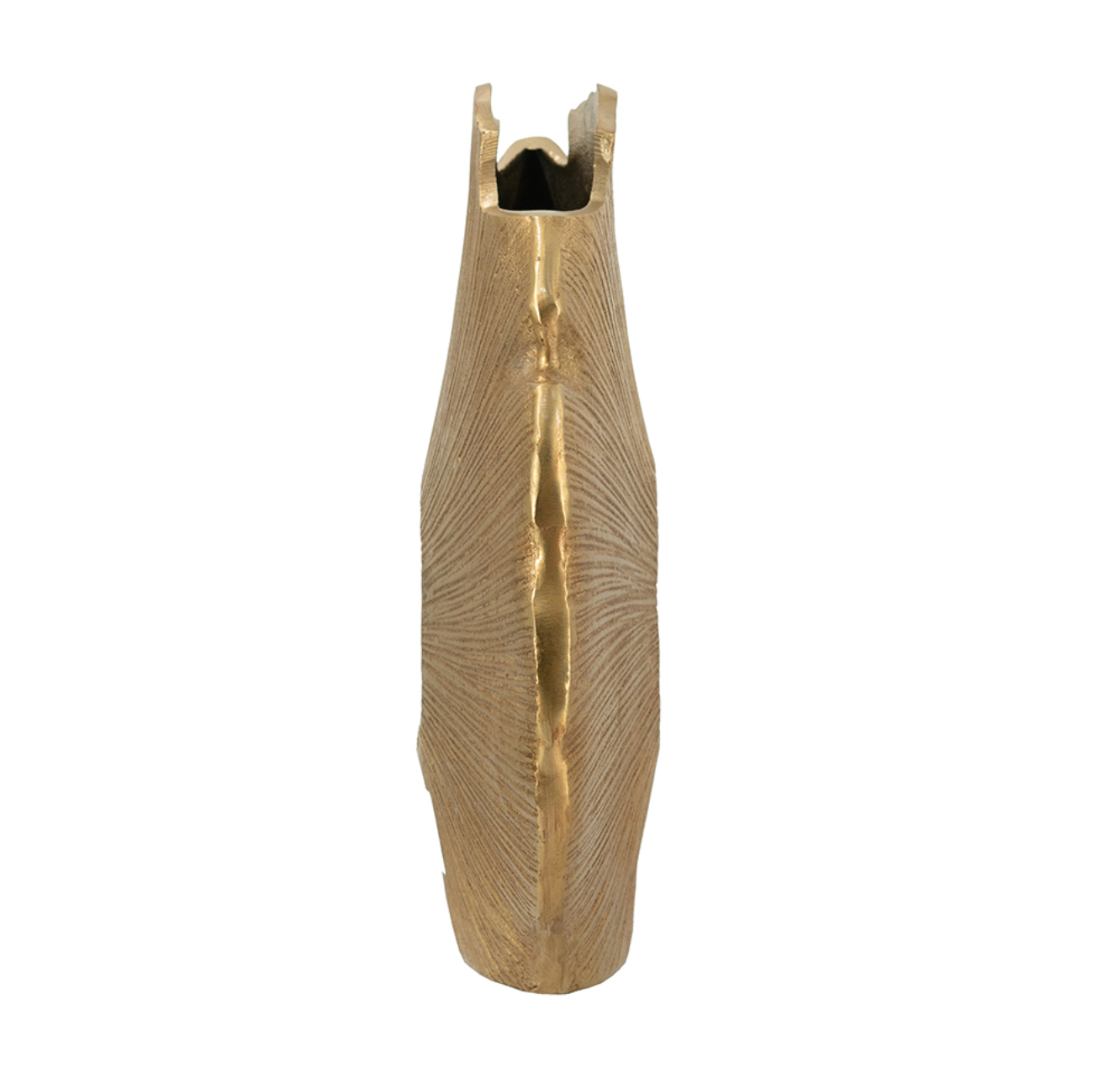 Sculptural and striking, this Gold Leaf–Inspired Aluminum Vase doubles as functional décor and modern art. Its organic silhouette, radiating texture, and open center create visual movement, while the warm gold finish adds a touch of understated luxury. Style it on its own or with minimal stems for a bold, curated look on consoles, shelves, or coffee tables.