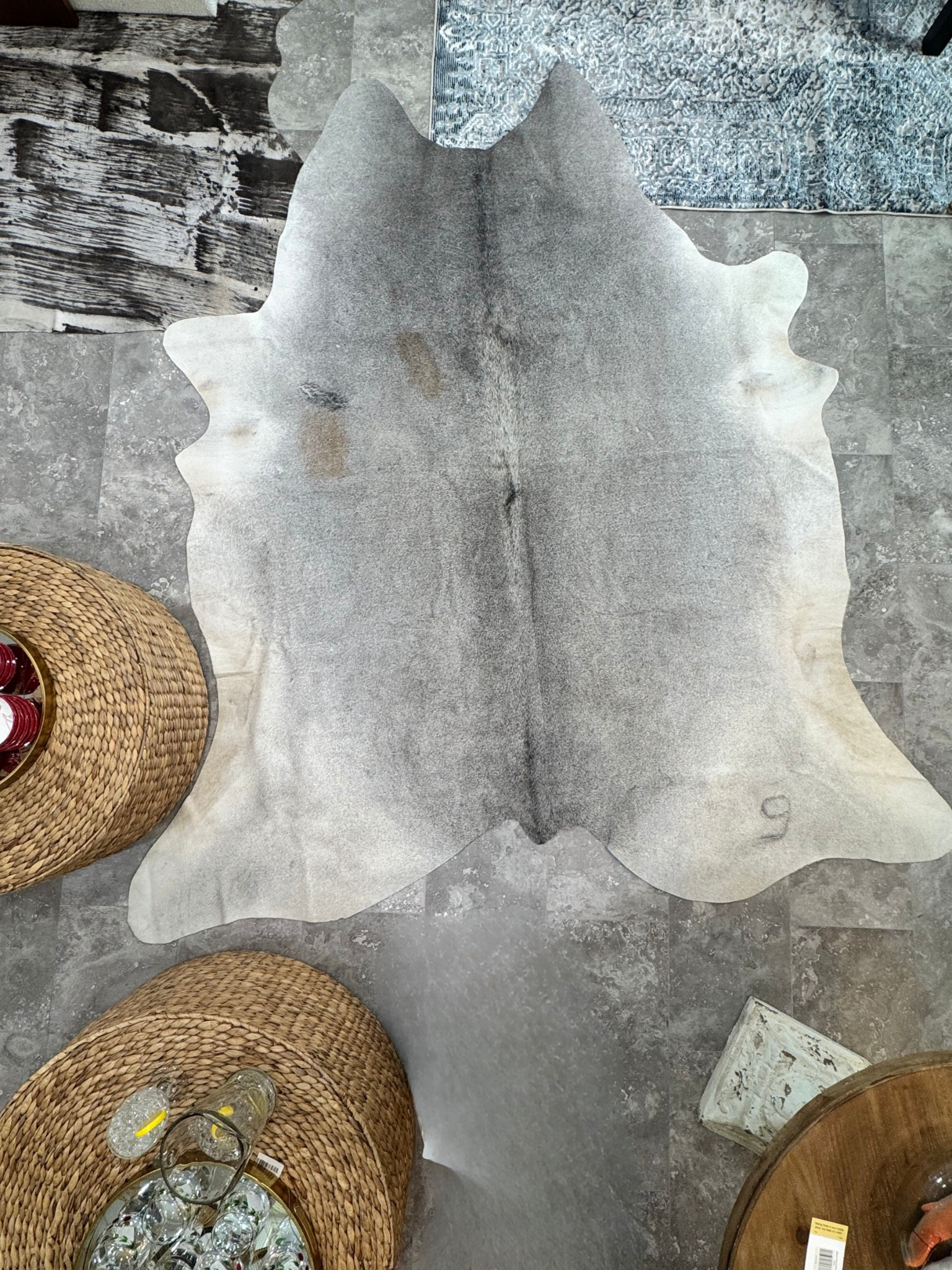 Our XL Grey Cowhide is a timeless neutral statement piece, featuring beautiful natural grey tones with subtle variations that add depth and character. The soft gradient from light silver to deeper charcoal along the spine creates quiet movement without overwhelming a space.