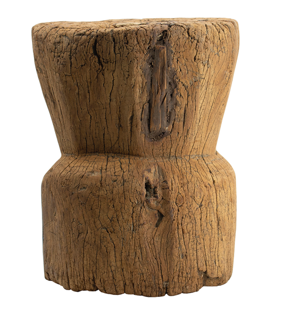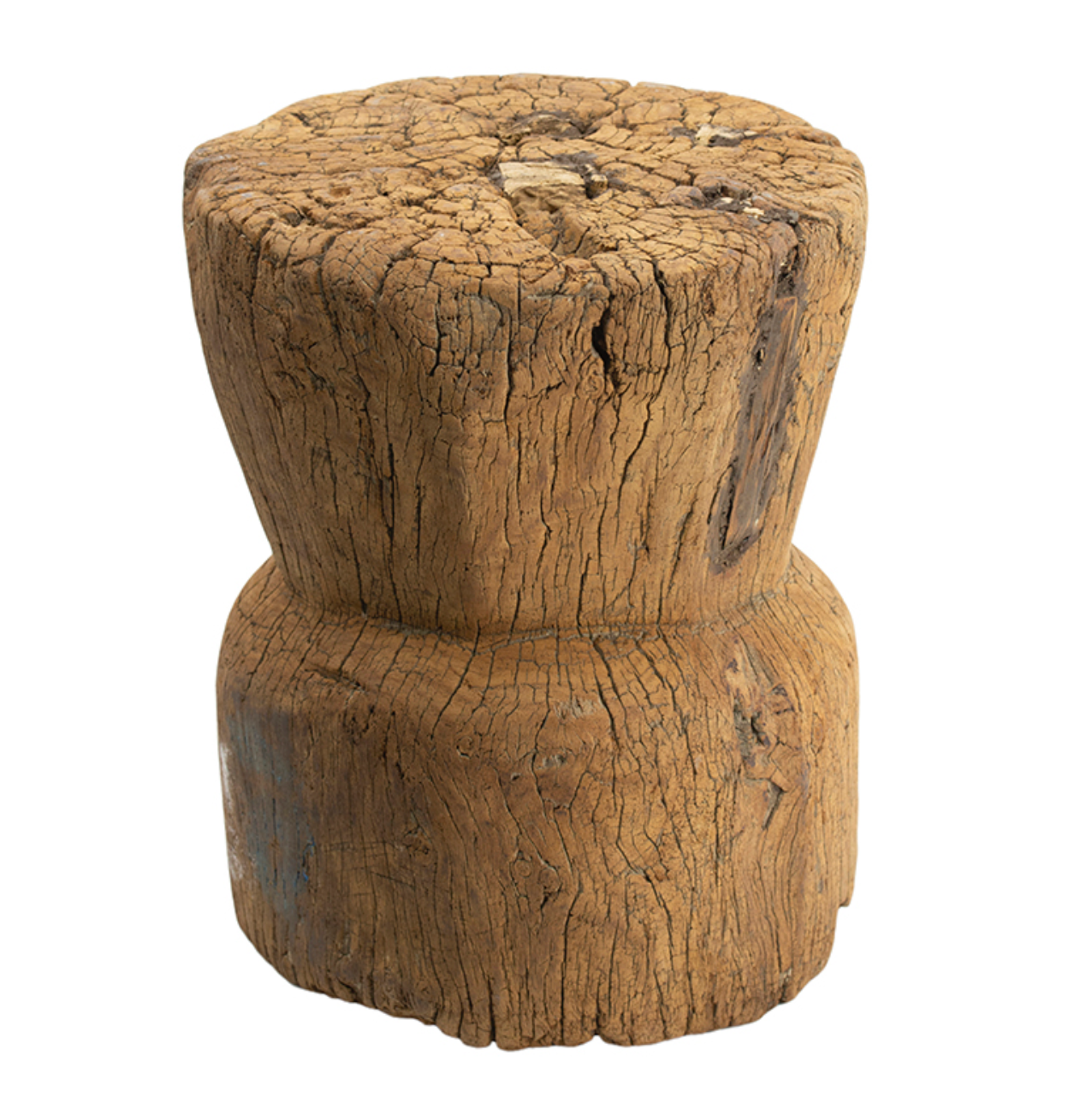 Rich with history and organic character, this Antique Round Wooden Low Stool showcases beautifully aged wood with natural cracks, texture, and patina that make each piece truly one of a kind. Its compact, sculptural form works effortlessly as a low stool, side table, or decorative accent, adding warmth and authenticity to any space. A timeless piece that blends rustic charm with curated design.