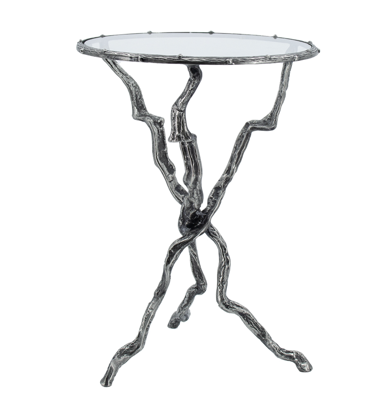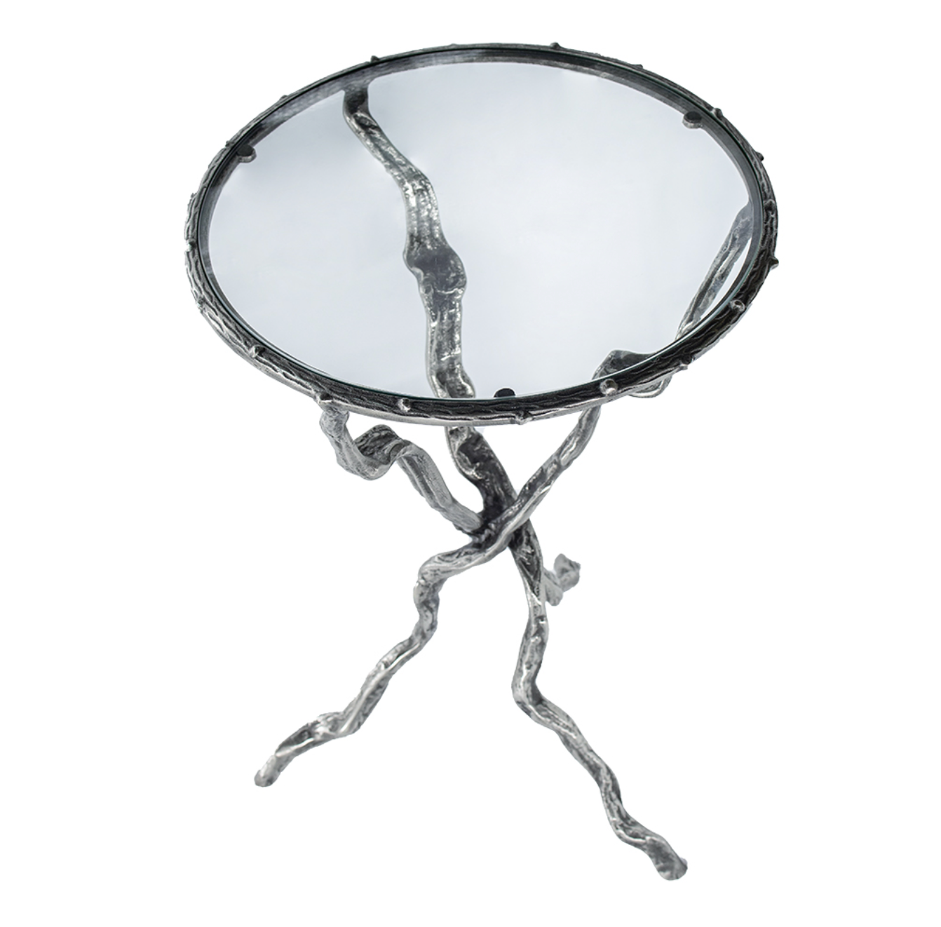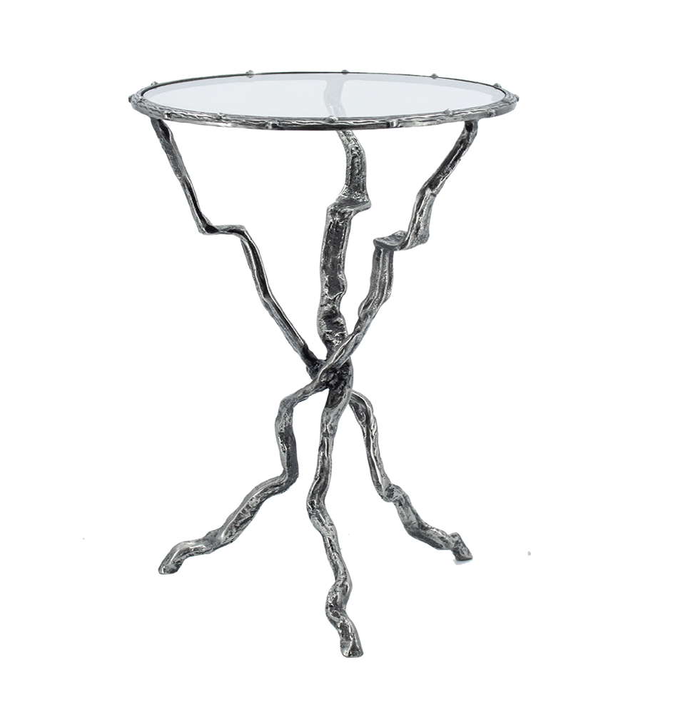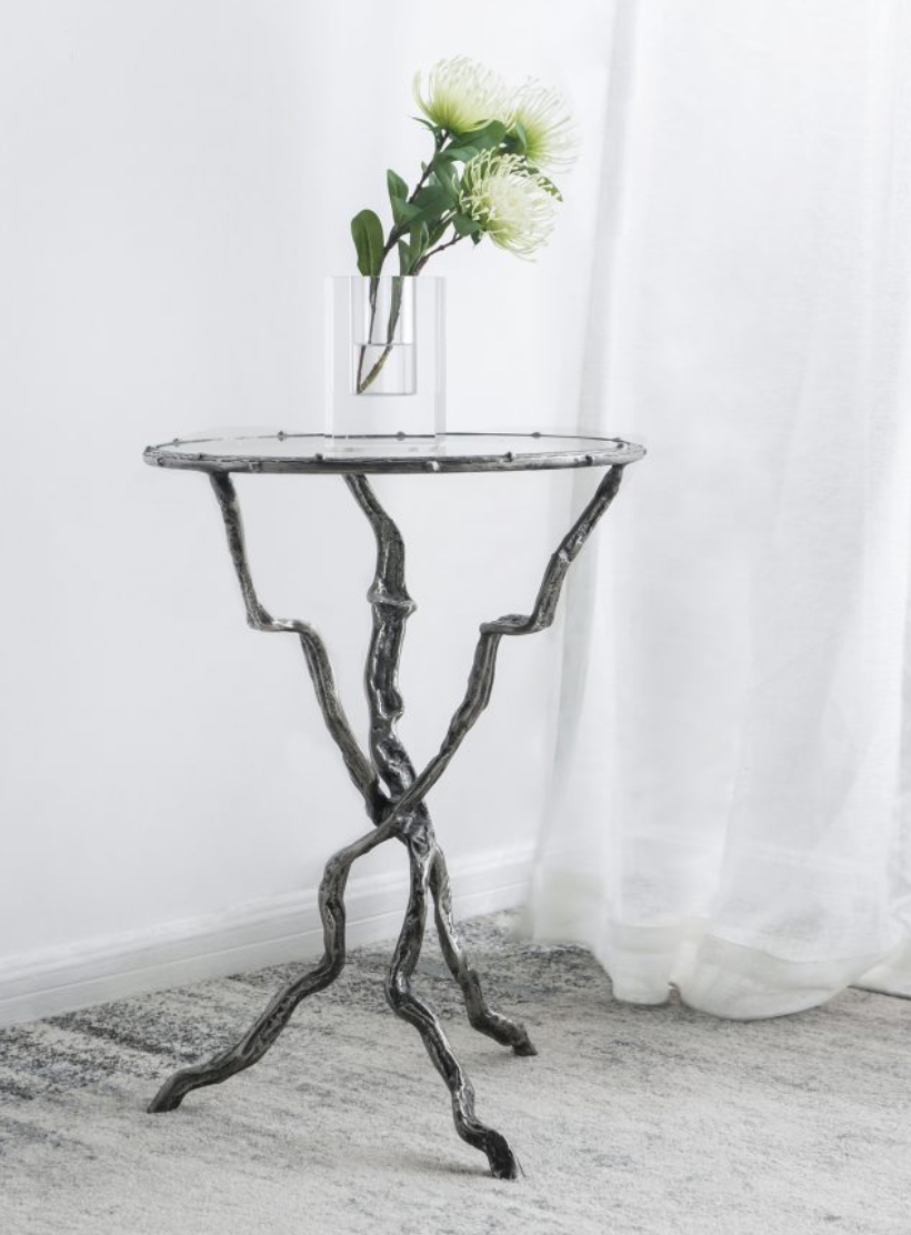 Artful and organic, the Twig Cross Accent Table features a sculptural metal base inspired by intertwined branches, creating a striking natural form with modern appeal. Topped with a round glass surface, this table feels light yet architectural—perfect for displaying décor, holding a drink, or adding a statement moment to any room. A true conversation piece that blends nature-inspired design with contemporary elegance.